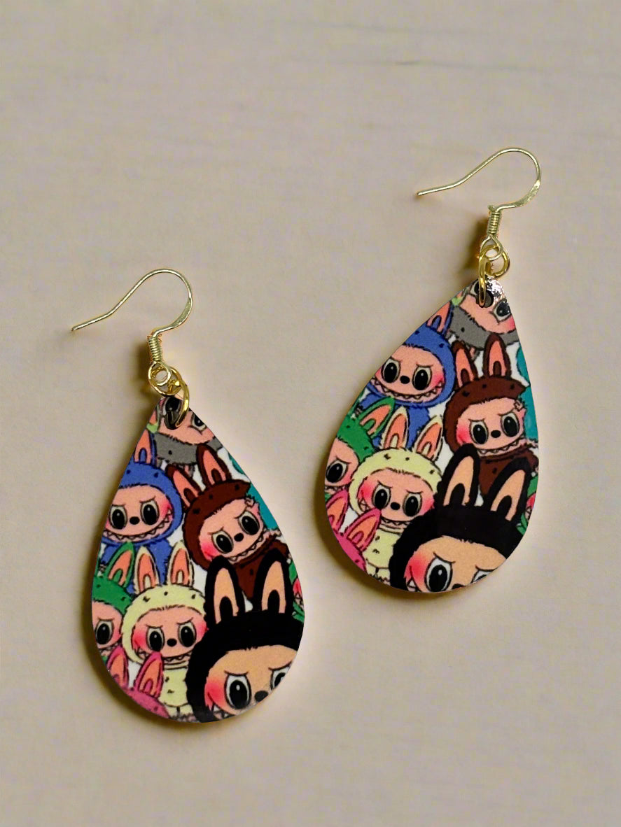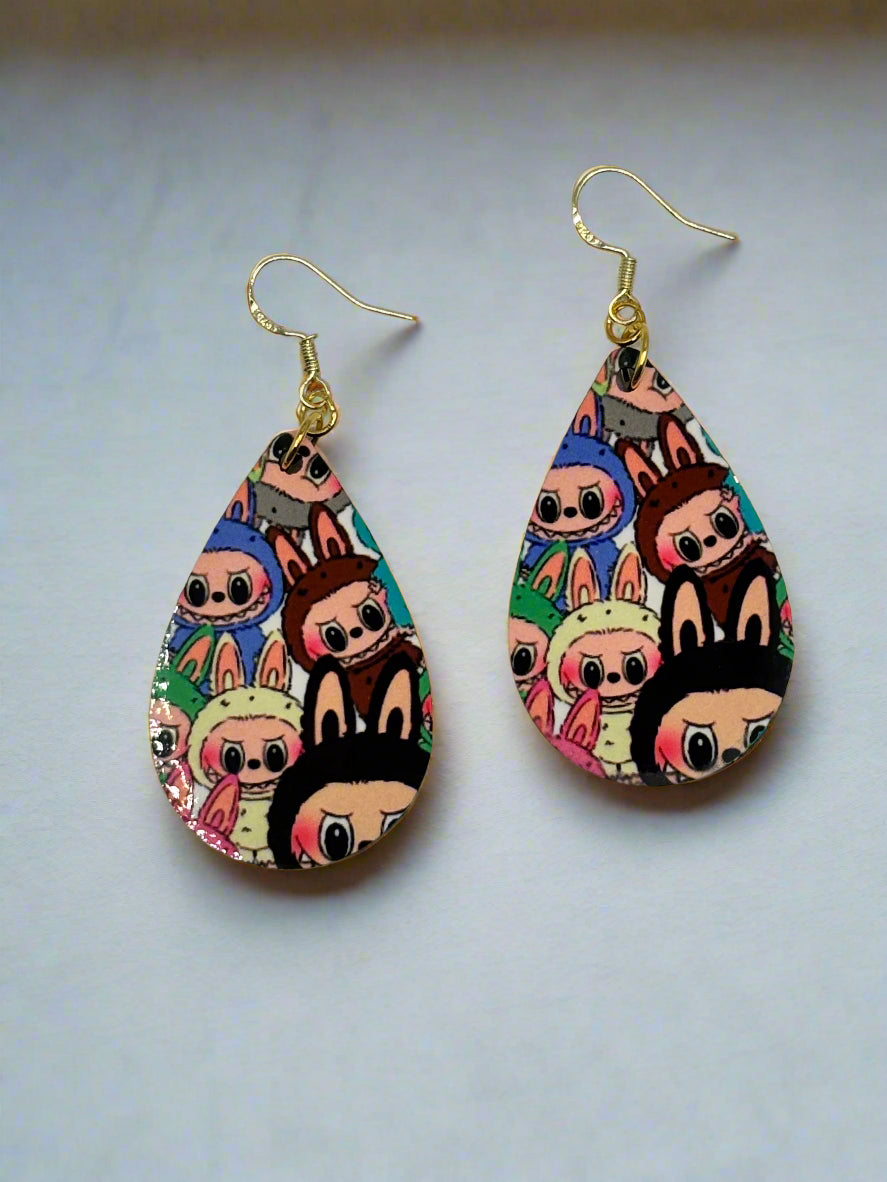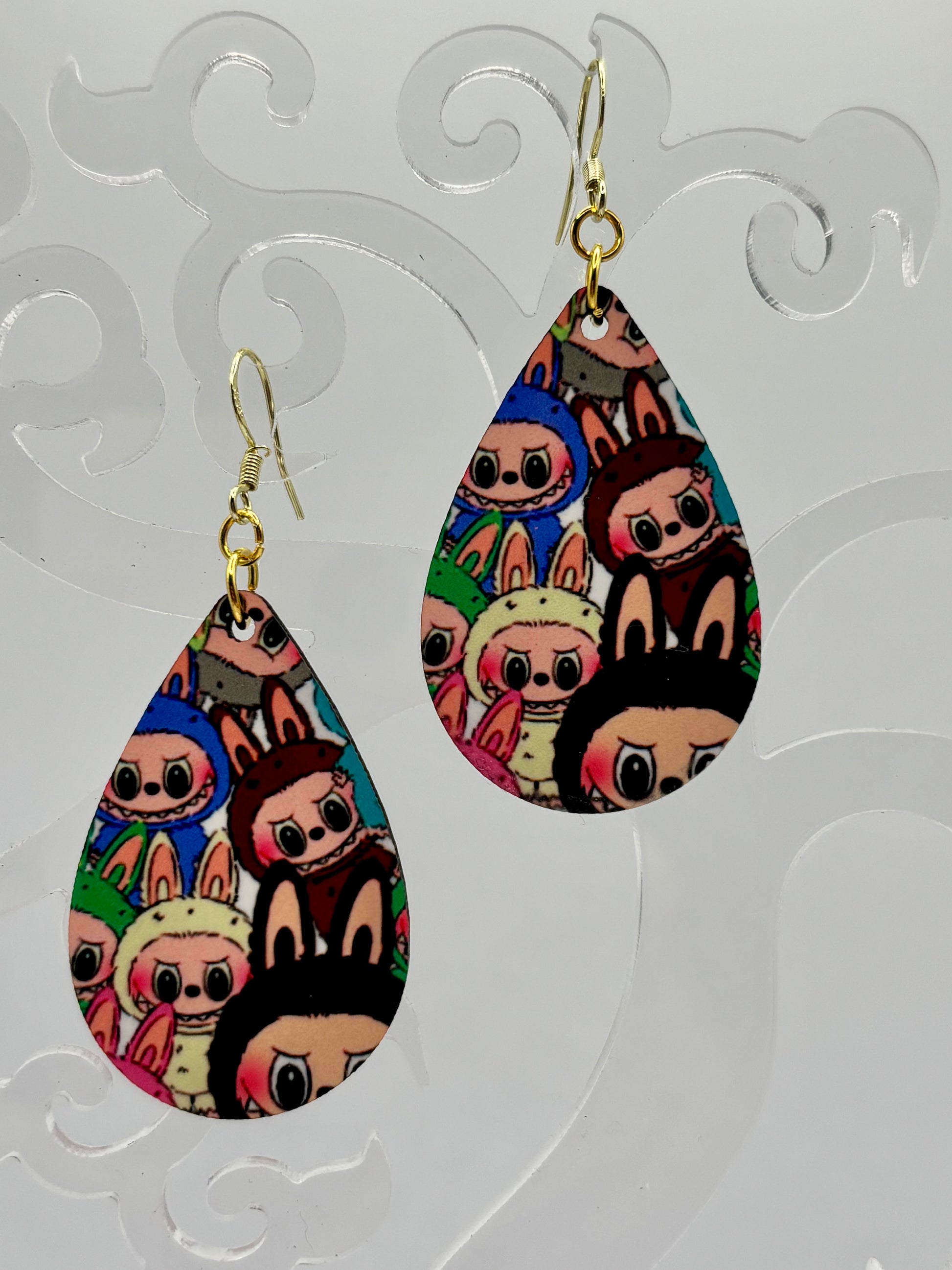 Add a pop of fun to your outfit with these adorable Labubu character earrings! Featuring vibrant Labubu characters imprinted on both sides, these earrings are both whimsical and stylish. The 14k gold plated hooks are hypoallergenic, making them safe and comfortable for daily wear. Perfect for any Labubu fan or anyone who loves cute and unique accessories!