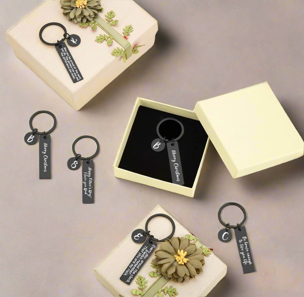 Black Stainless Steel Personalized Key Holder - Custom Engraved Keyring