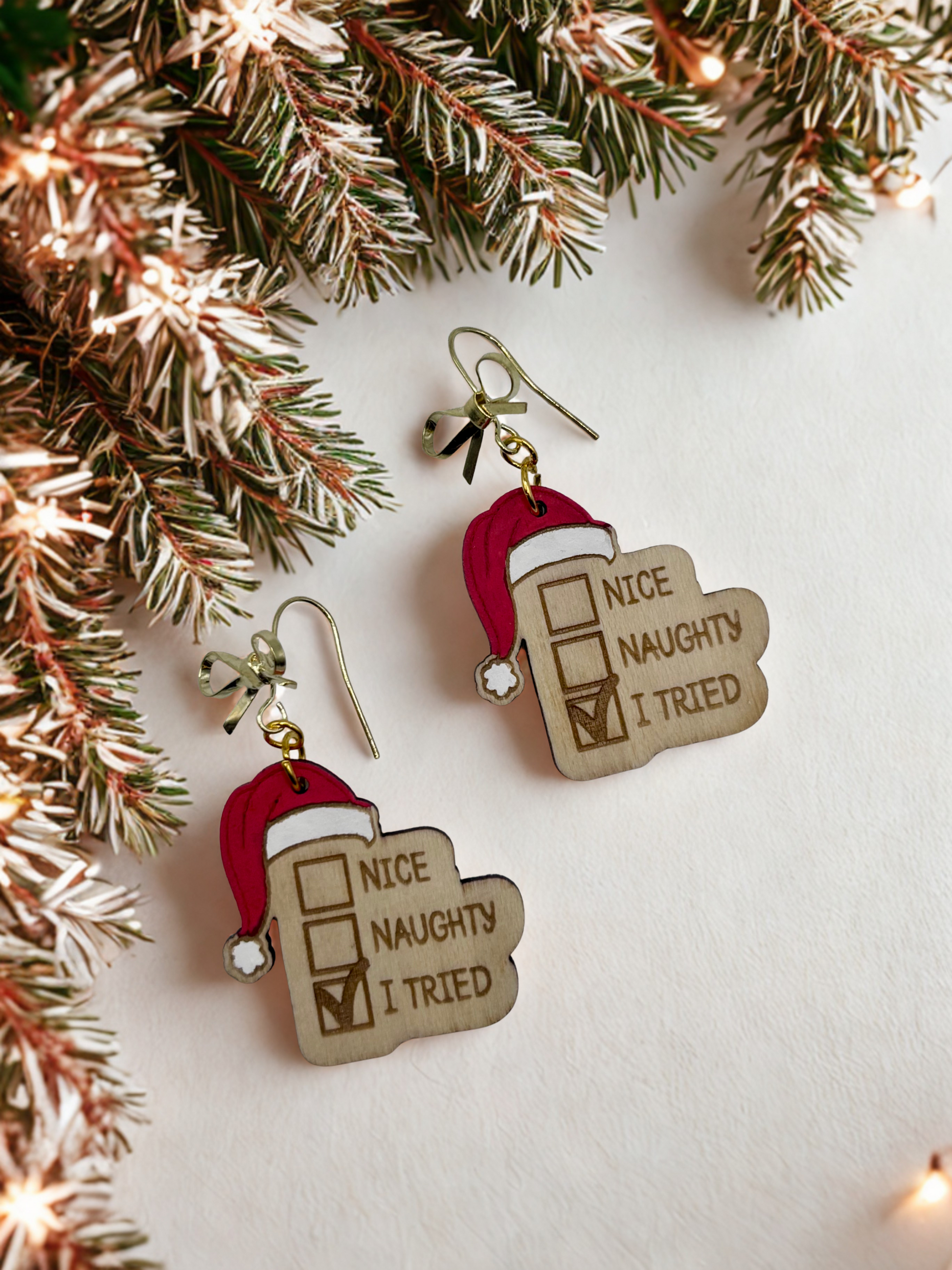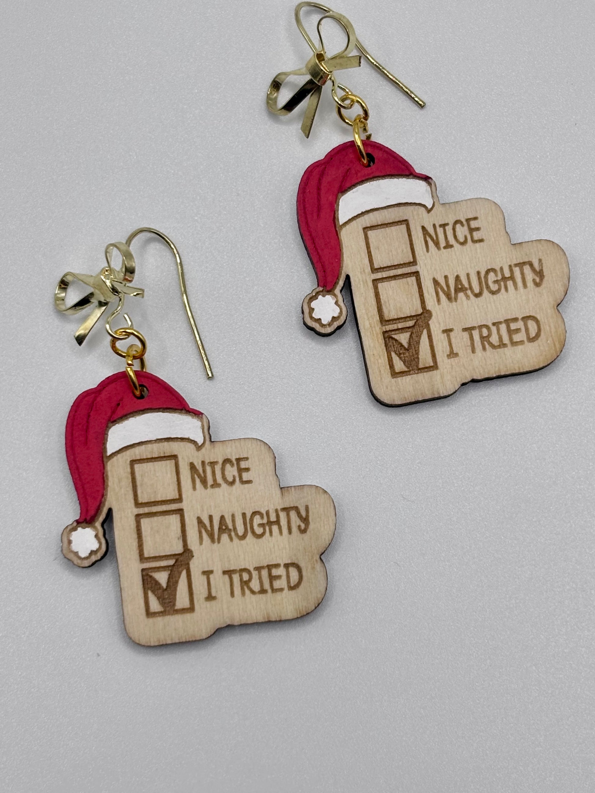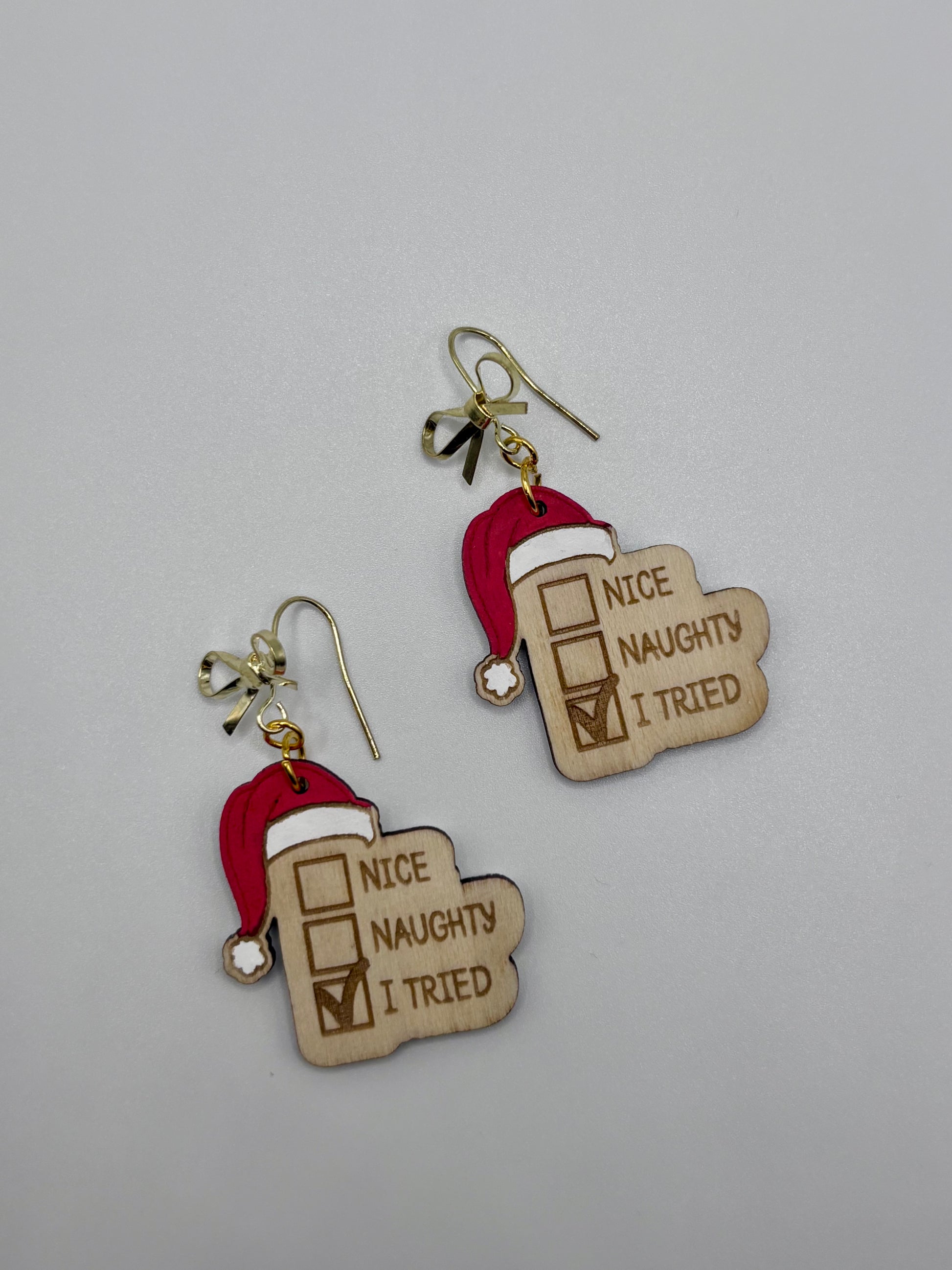 Adorable Christmas Earrings Naughty List featuring Hypoallergenic Bow Hooks, Hand painted and Lightweight Festive Holiday Earrings