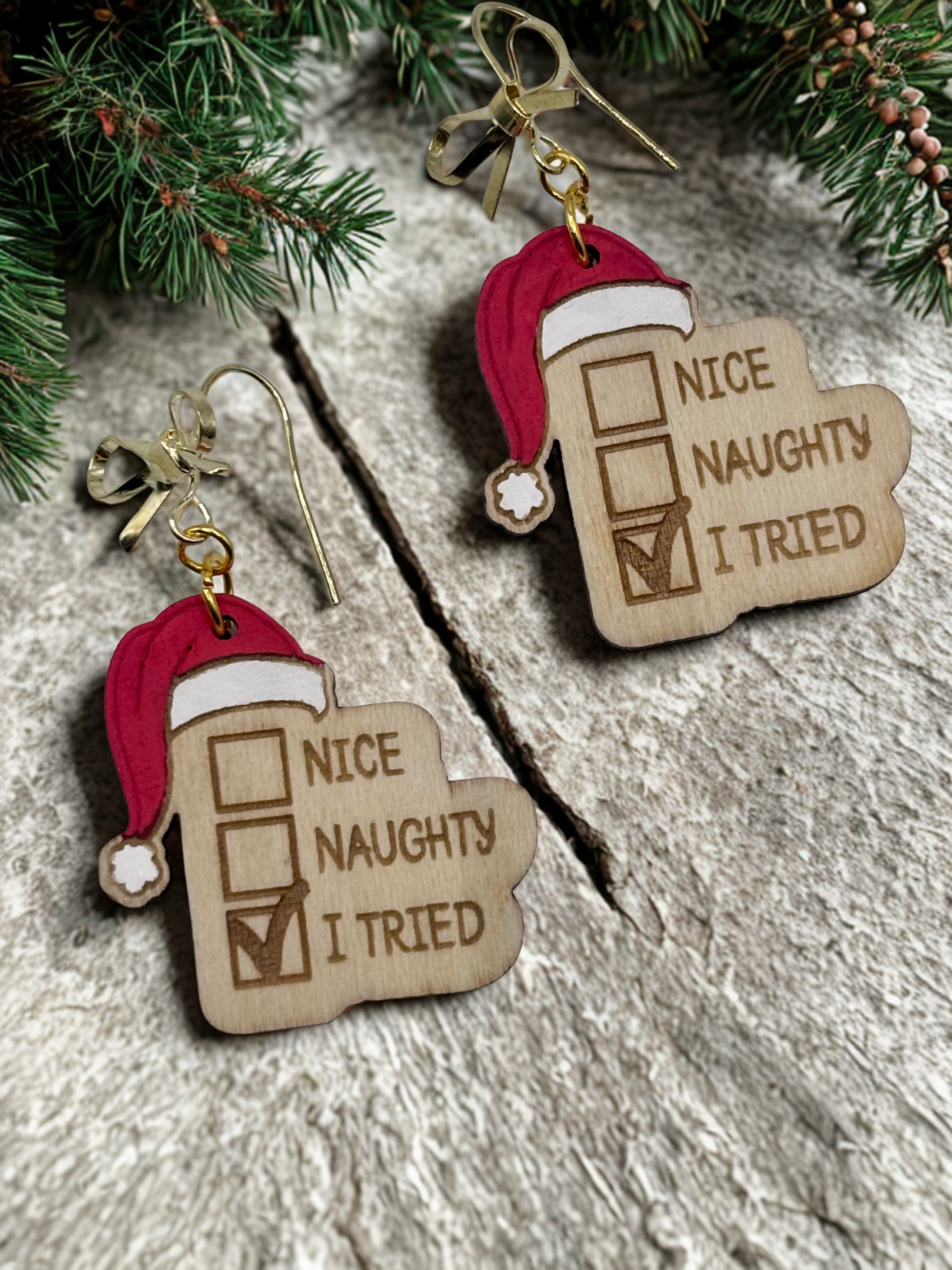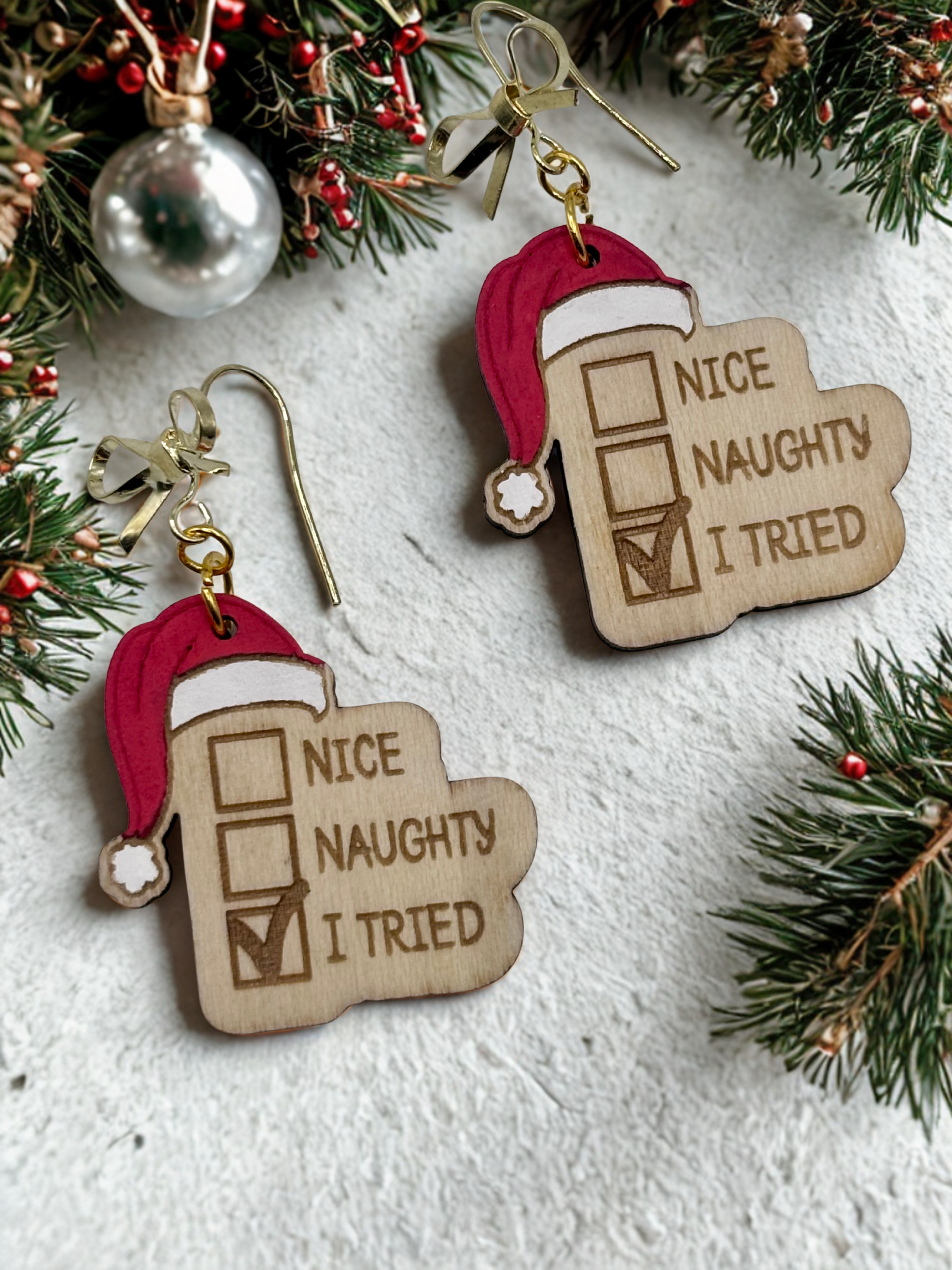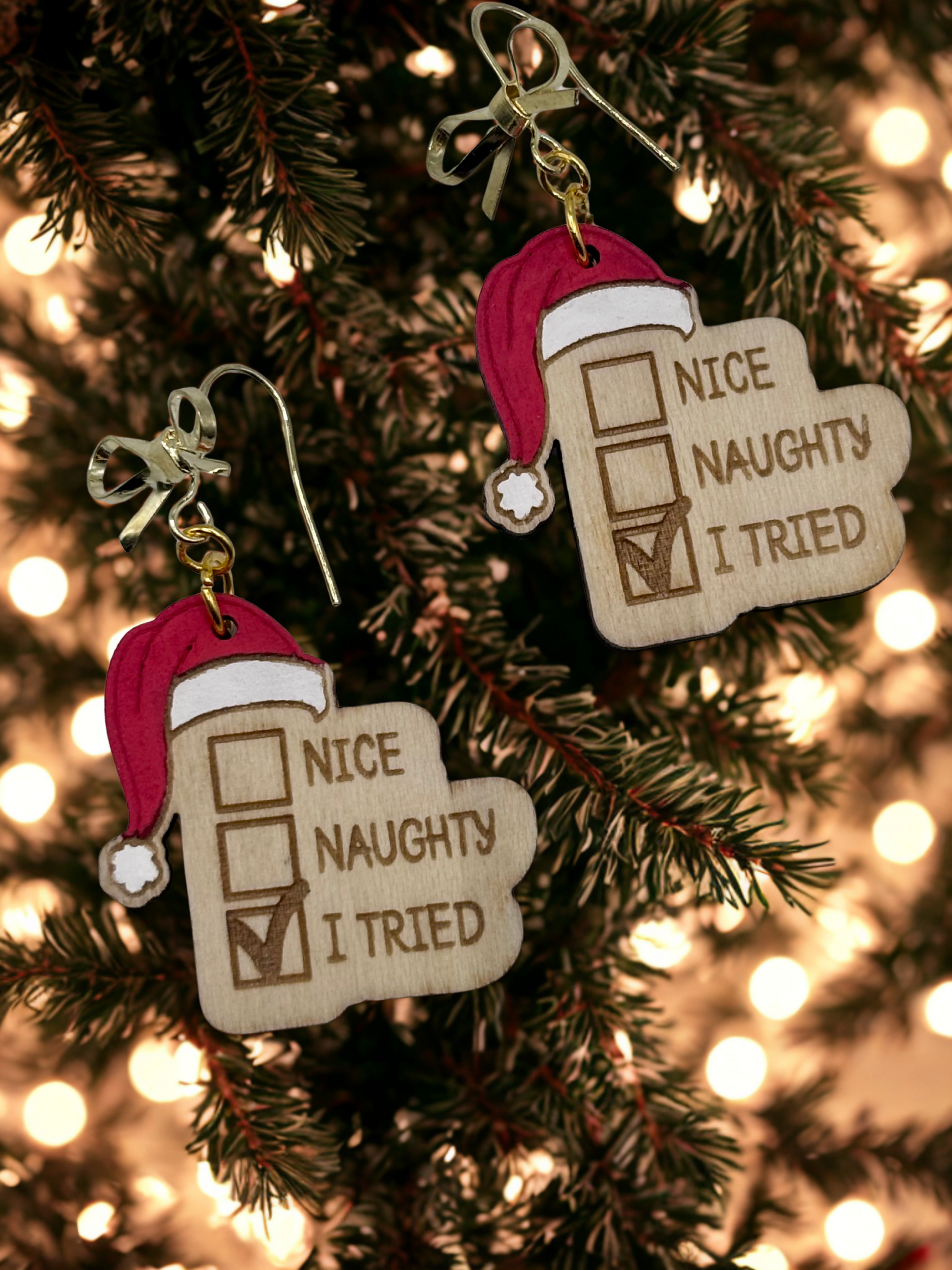 Adorable Christmas Earrings Naughty List featuring Hypoallergenic Bow Hooks, Hand painted and Lightweight Festive Holiday Earrings